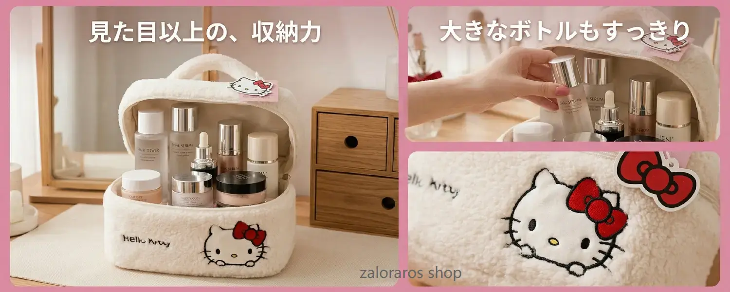 ♡Design: Made of fuzzy lambswool for an extremely soft and comfortable feel; the large-capacity square bag easily holds lotion bottles, cosmetics, and makeup tools; the classic handmade Hello Kitty embroidery pattern is beautiful and durable.
