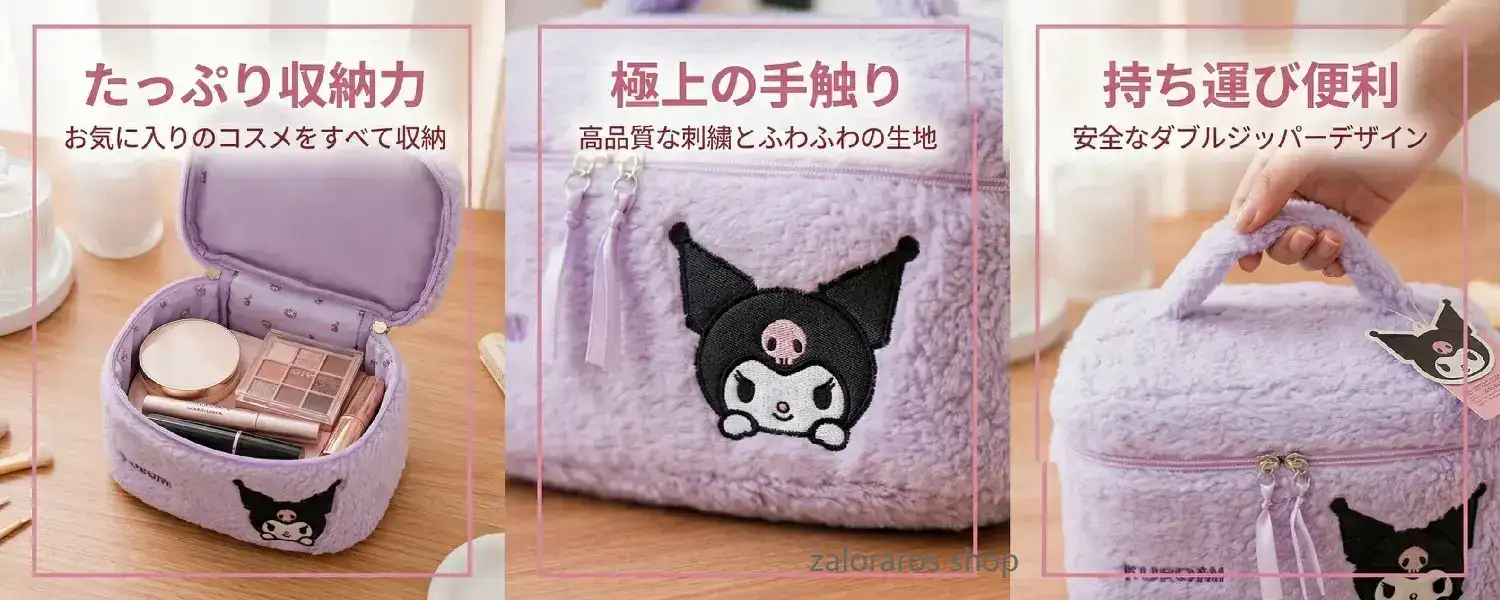 ♡Design: Made of fuzzy lambswool for an extremely soft and comfortable feel; the large-capacity square bag easily holds lotion bottles, cosmetics, and makeup tools; the classic handmade Kuromi embroidery pattern is beautiful and durable.