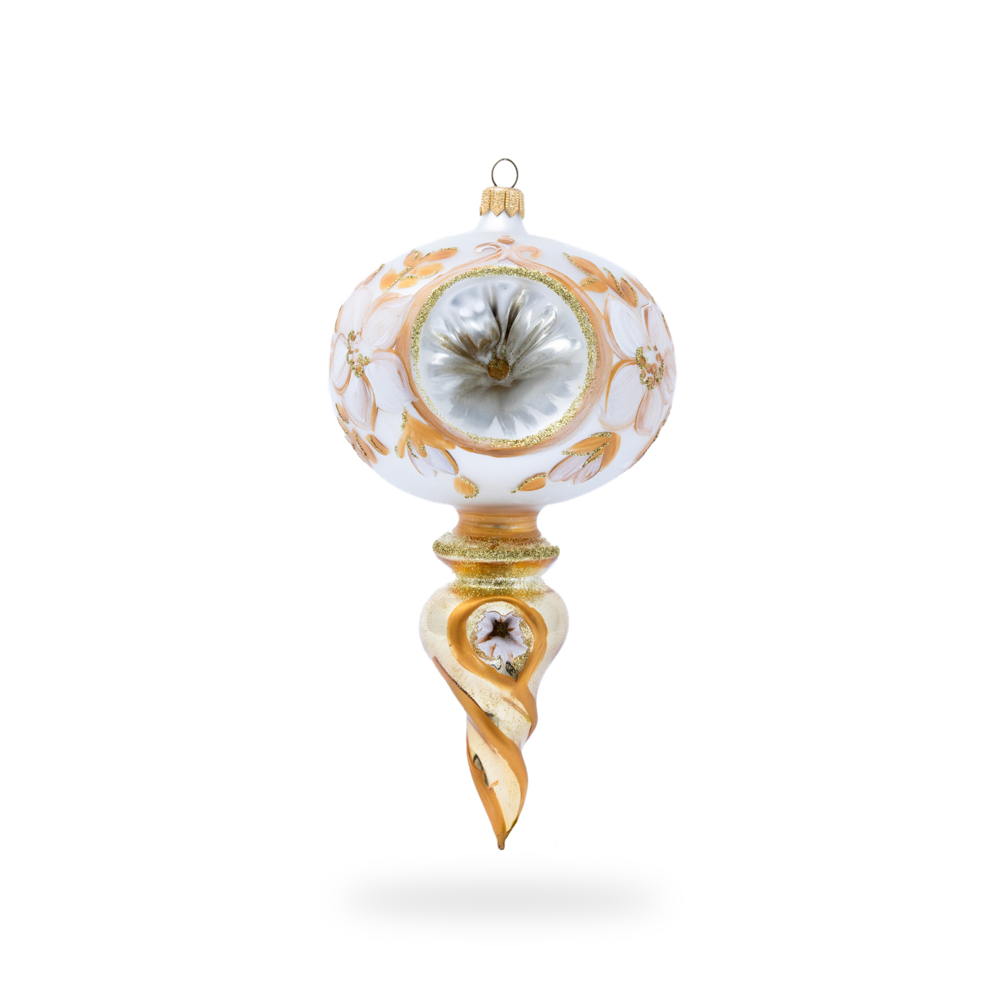 Sfera in vetro soffiato Ø 100 mm dipinta a mano con candele natalizie e fiori d’inverno
